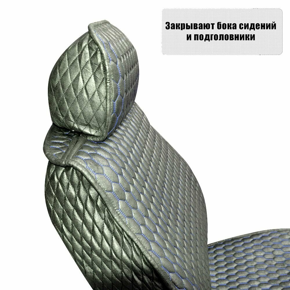 10 цен на Накидки-чехлы для Мазда 3 МПС (2006 - 2009) хэтчбек 5 дверей / Mazda 3 MPS на передние сиденья Luxe MK, Экокожа, Черный с синей строчкой