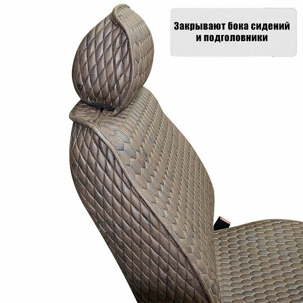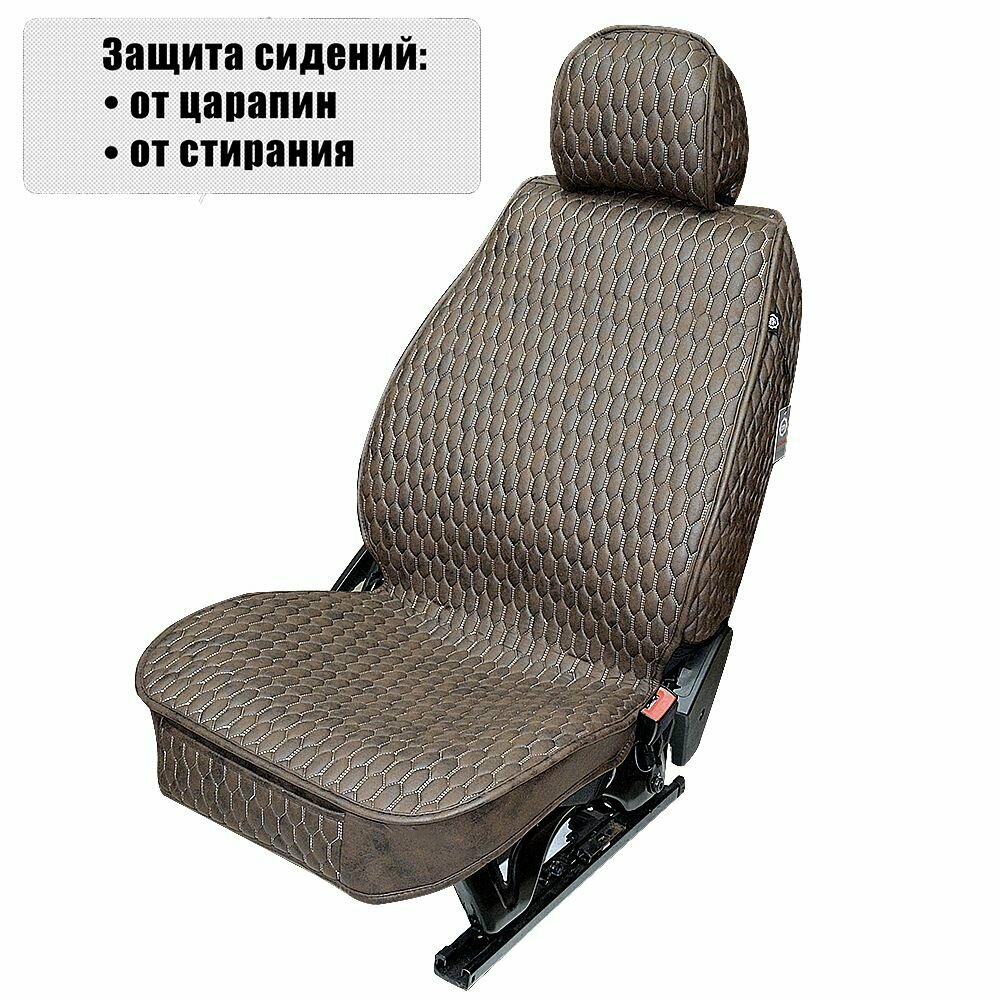 Накидки-чехлы для Мерседес-Бенц б-класс (2005 - 2009) хэтчбек 5 дверей / Mercedes-Benz B-Class на передние сиденья Luxe MK, Экокожа, Шоколадный с бежевой строчкой информация: