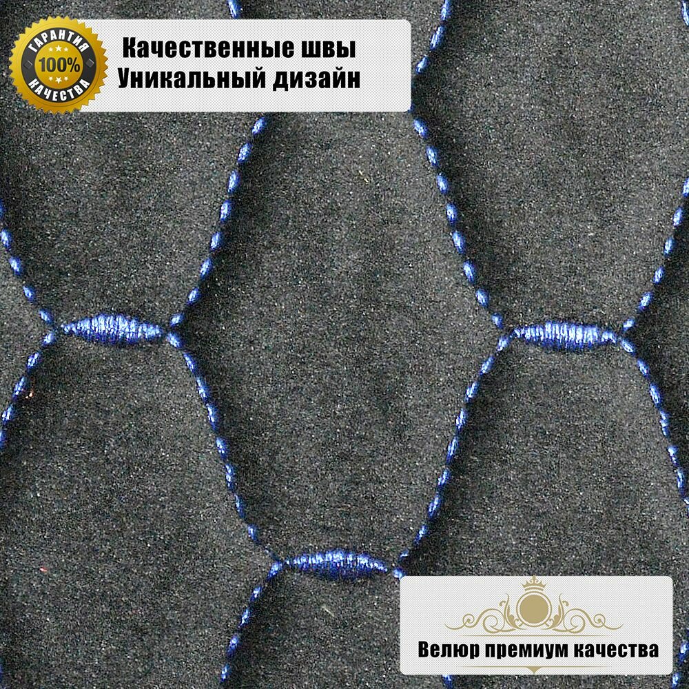 10 цен на Накидки-чехлы для Киа Мохав (2008 - 2016) внедорожник 5 дверей / Kia Mohave на весь салон Luxe Soty, Велюр, Черный с синей строчкой