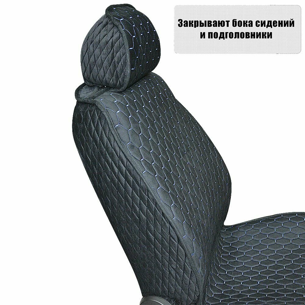 Накидки-чехлы для Киа Мохав (2008 - 2016) внедорожник 5 дверей / Kia Mohave на весь салон Luxe Soty, Велюр, Черный с синей строчкой информация: