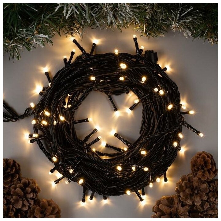 10 цен на Гирлянда «Нить» 10 м, IP44, УМС, тёмная нить, 100 LED, свечение тёплое белое, 220 В