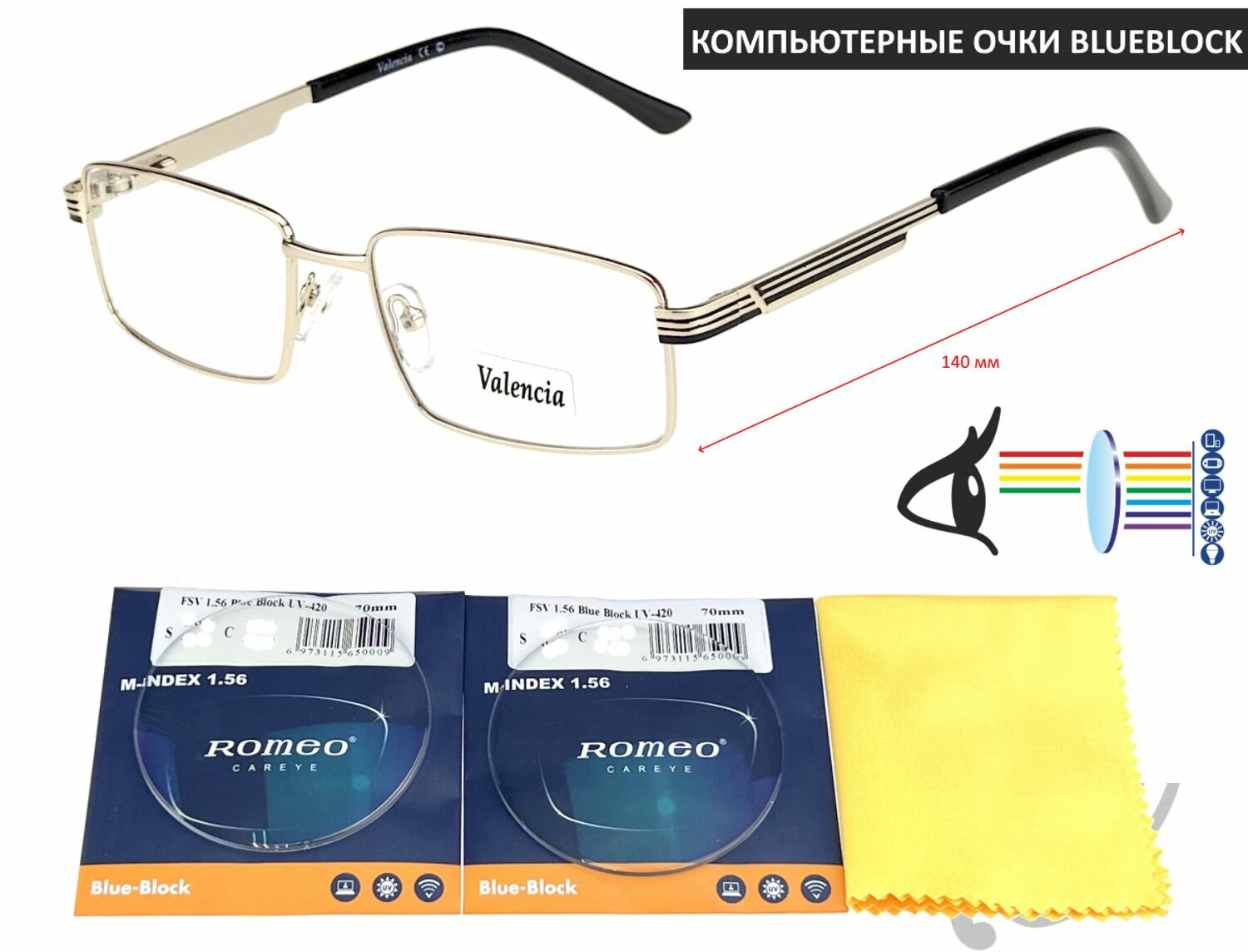 Отзывы на Компьютерные очки VALENCIA мод. 31341 Цвет 1 с линзами ROMEO 1.56 Blue Block -1.75 РЦ 62-64