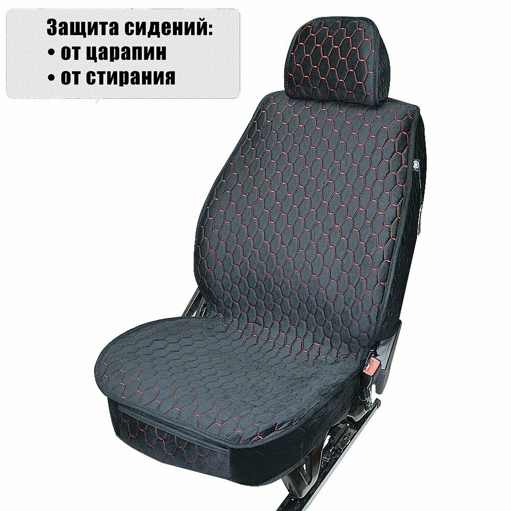 Отзывы на Накидки-чехлы для Ниссан Террано (1999 - 2006) внедорожник 5 дверей / Nissan Terrano на весь салон Luxe Soty, Велюр, Черный с красной строчкой