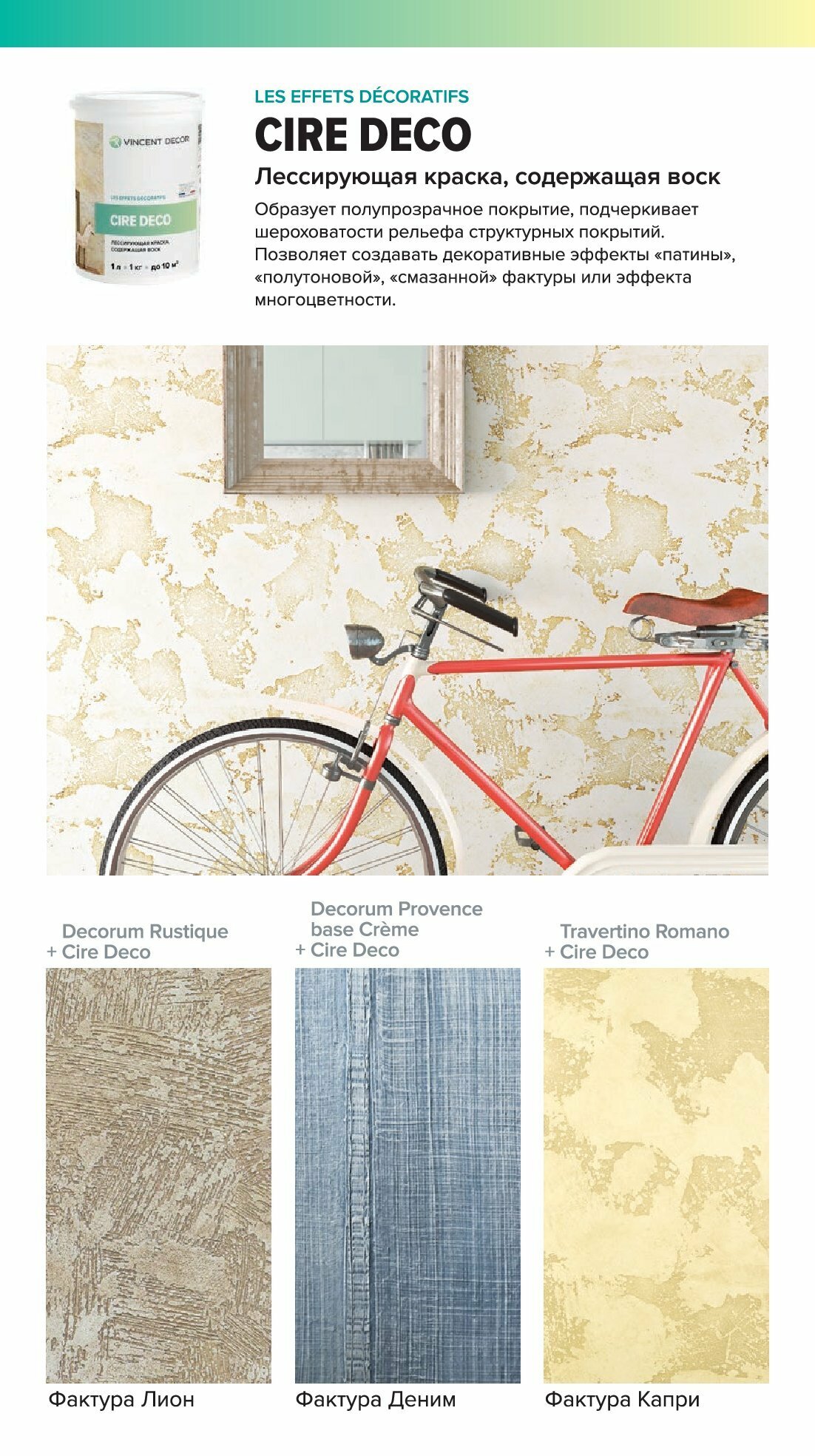 Краска декоративная лессирующая с воском Vincent Decor Cire Deco (1л) 51187 информация: