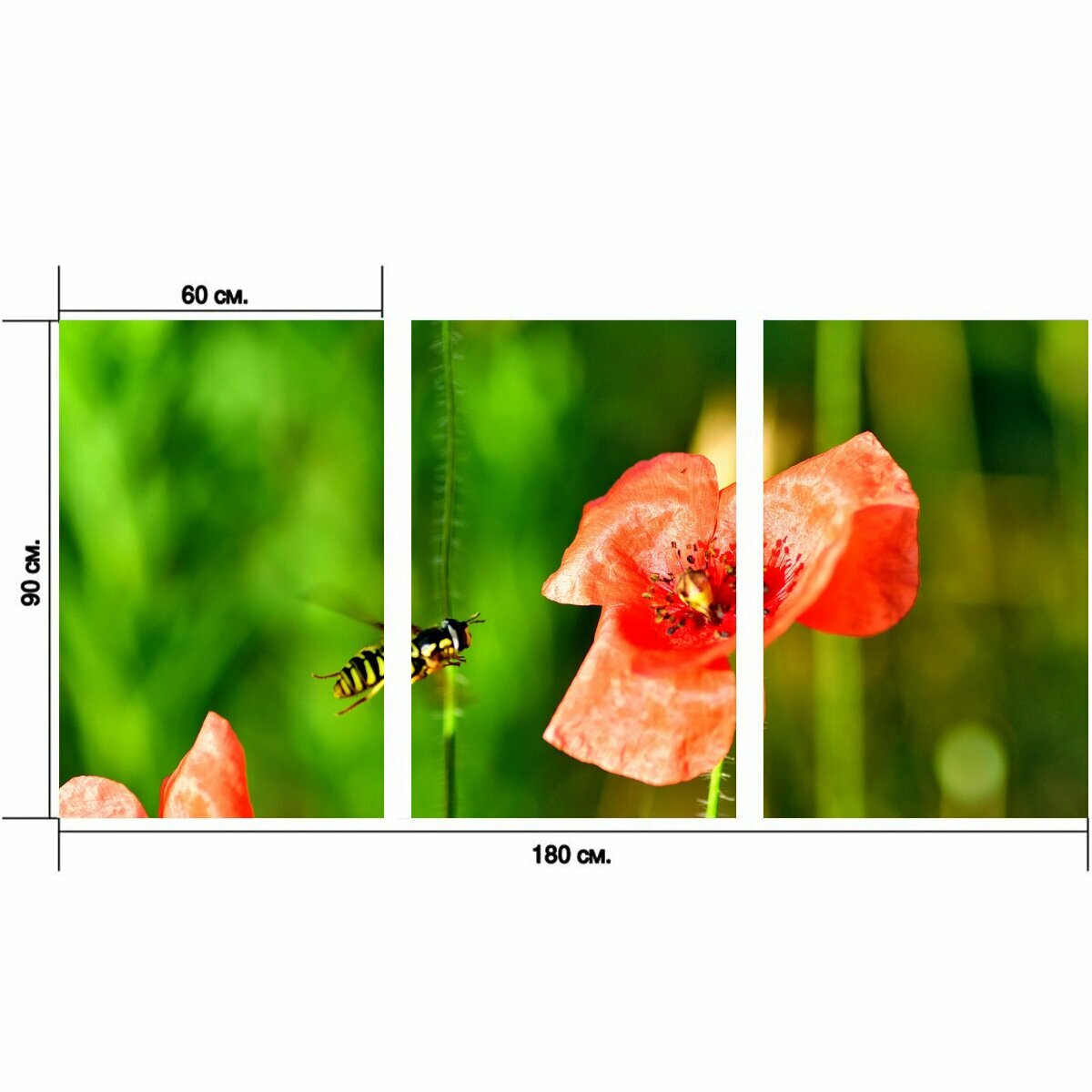 Отзывы на Модульный постер "Мак, оса, насекомое" 180 x 90 см. для интерьера