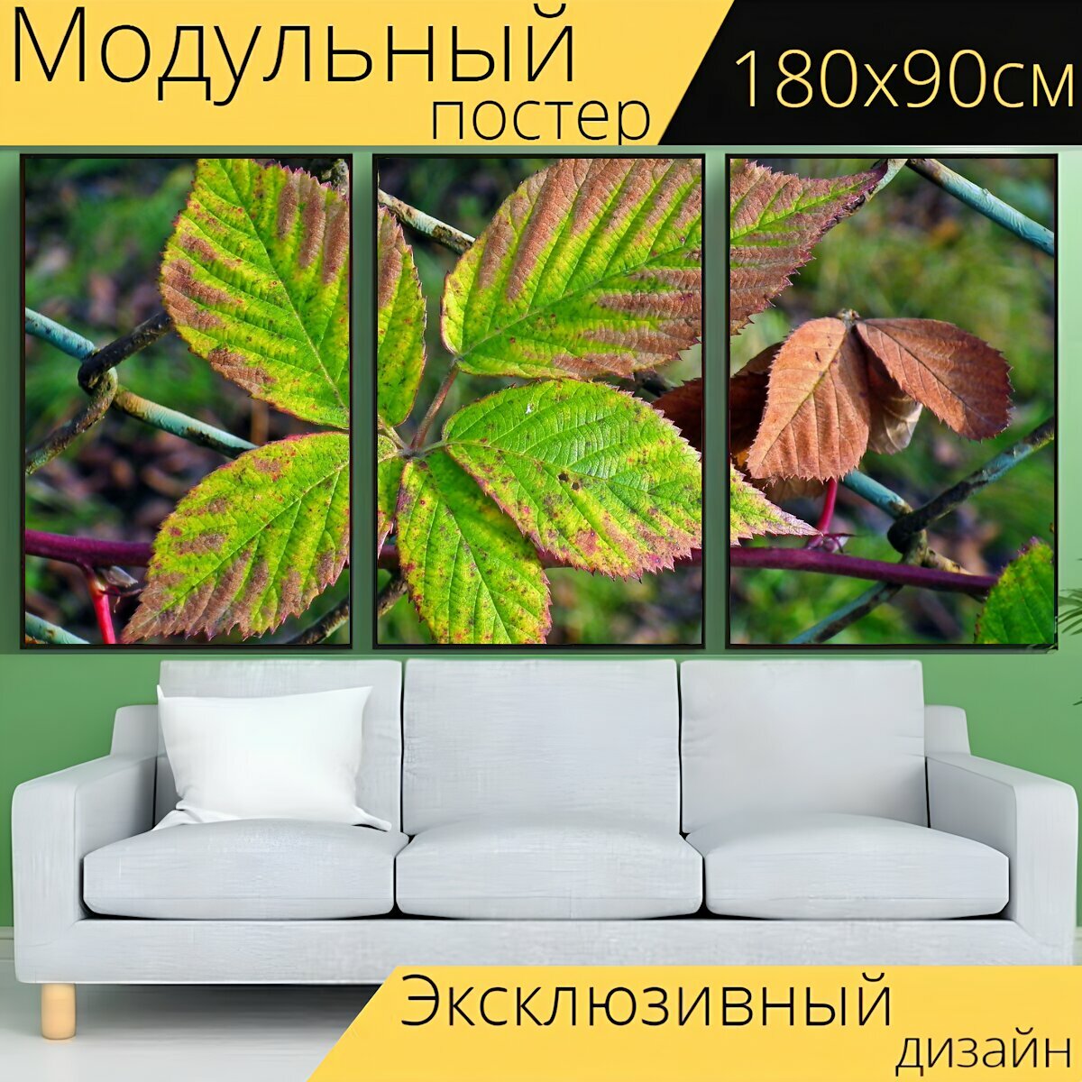 Модульный постер "Листья, листва, растения" 180 x 90 см. для интерьера информация: