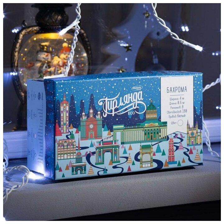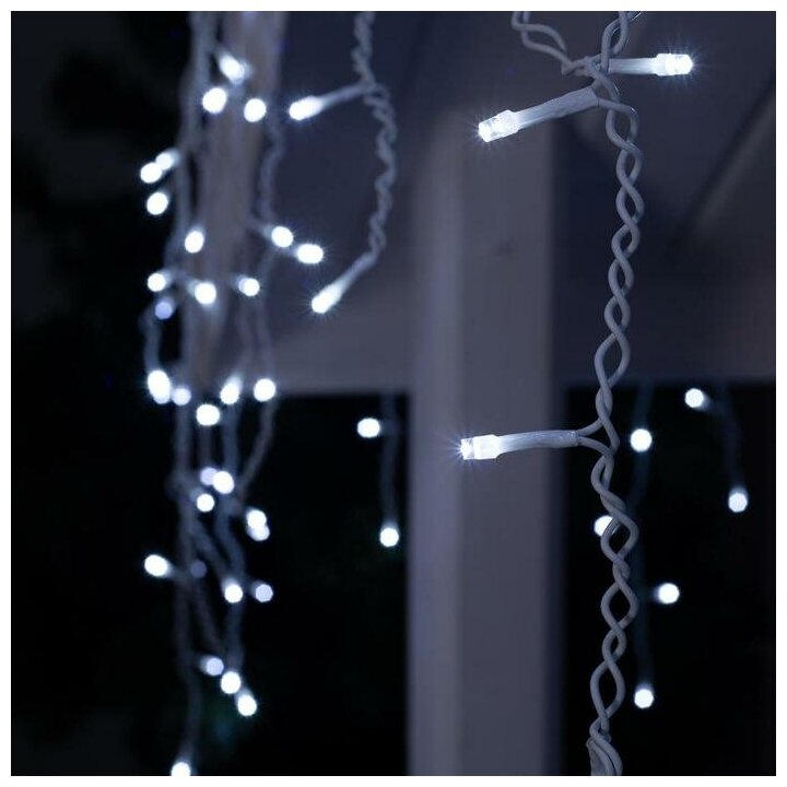 Отзывы на Гирлянда «Бахрома» 4 × 0.6 м, IP44, белая нить, 180 LED, свечение белое, 8 режимов, 220 В