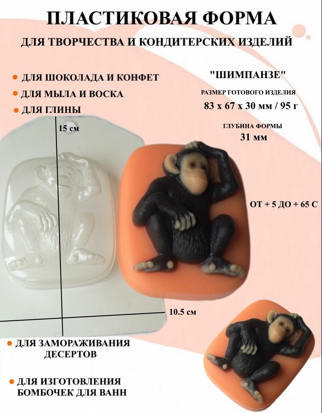 10 цен на Пластиковая форма Шимпанзе Б0650, новогодние формочки, формы для творчества, для шоколада и желе, молд, для свечей, для мыла, для льда, форма для десертов, для мыла и глины