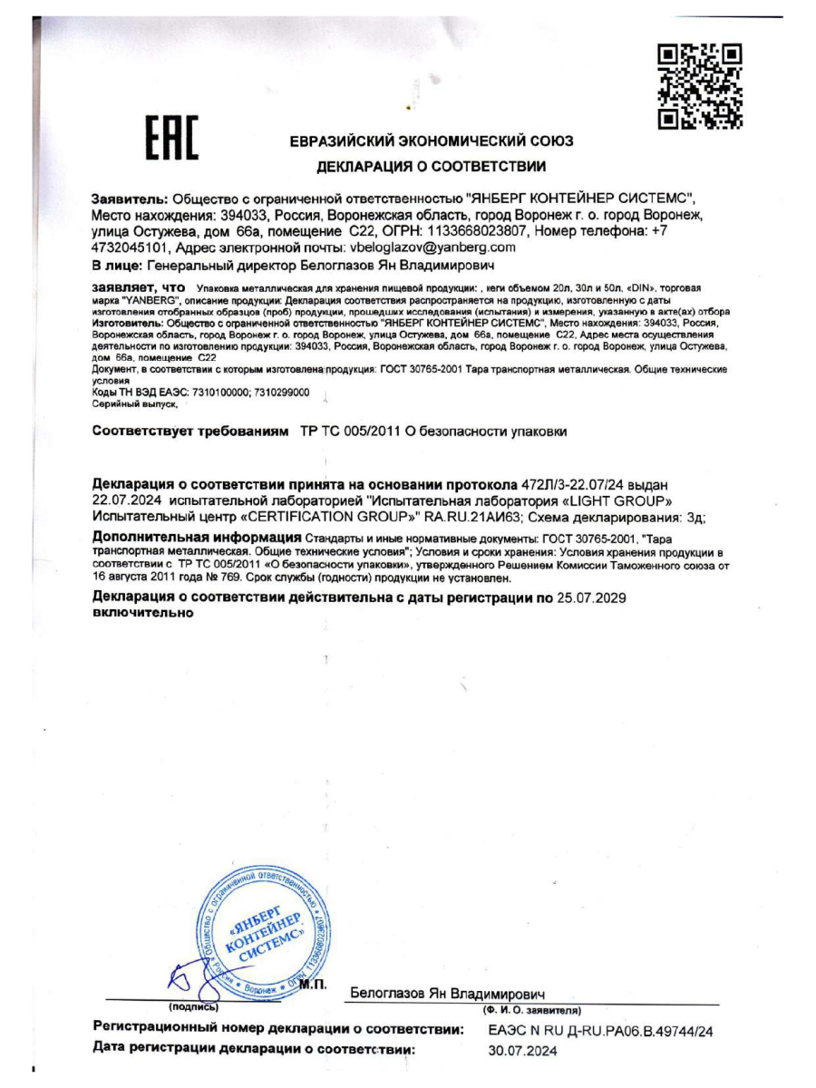 Янберг / Кег 30 л DIN из нержавеющей стали c крышкой (заглушкой) 4 дюйма и хомутом информация:
