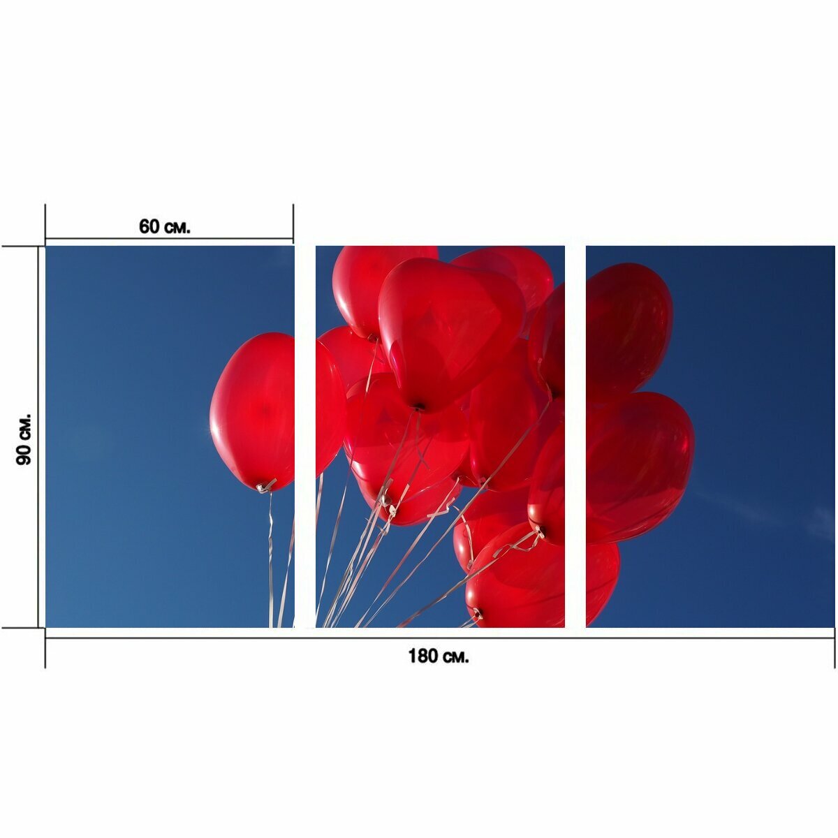 Отзывы на Модульный постер "Надувные шарики, сердца, любовь" 180 x 90 см. для интерьера