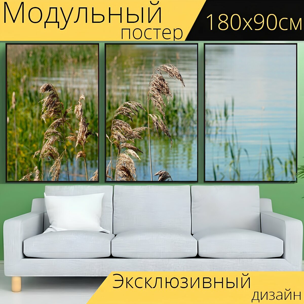 10 цен на Модульный постер "Тростник, трава, берег реки" 180 x 90 см. для интерьера