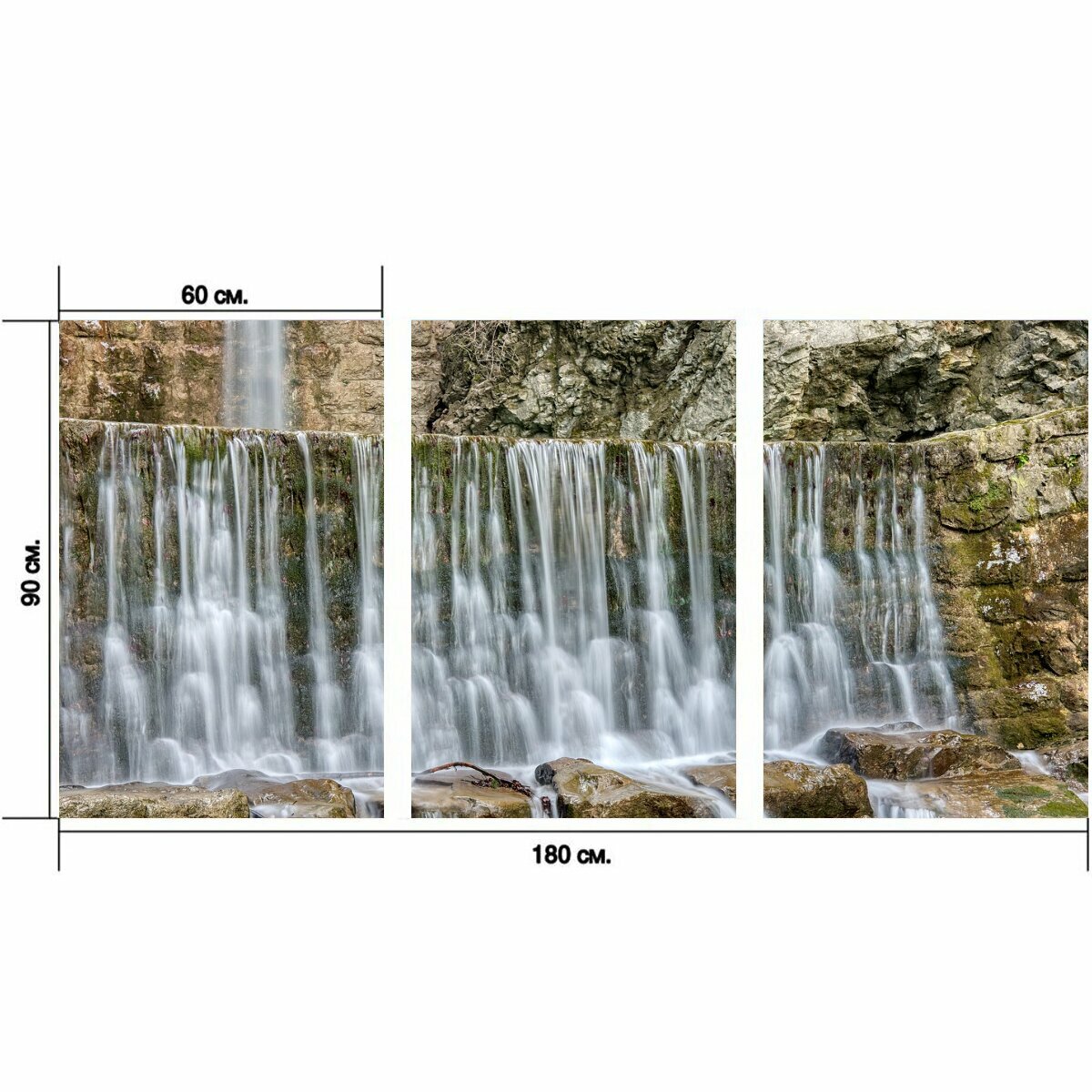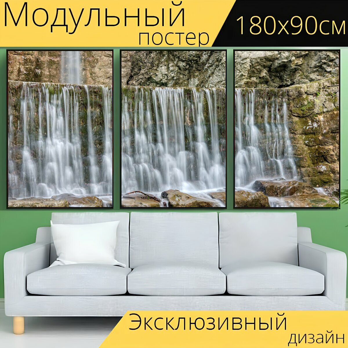 Модульный постер "Водопад, воды, камень" 180 x 90 см. для интерьера информация: