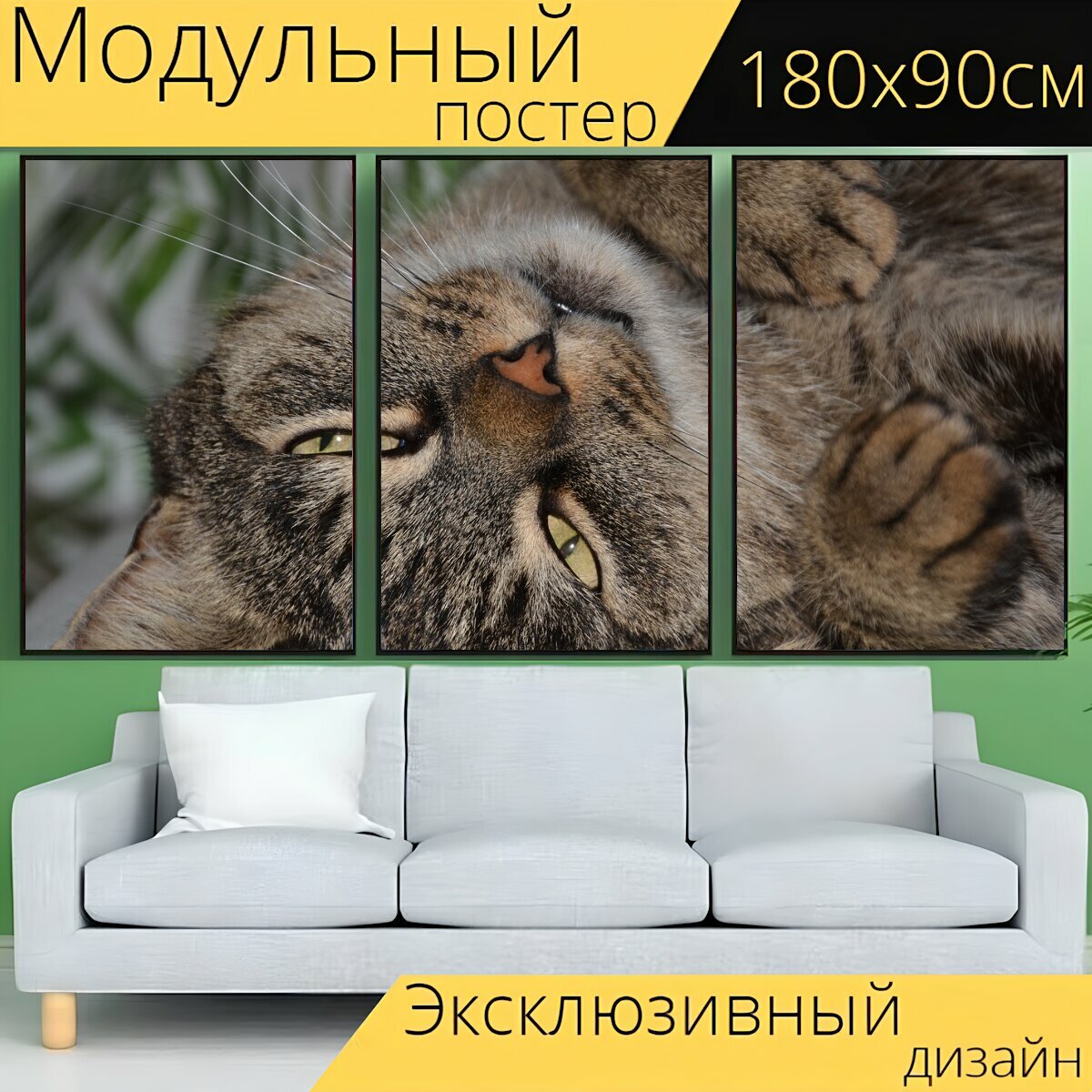 Отзывы на Модульный постер "Кот, похмелье, домашняя кошка" 180 x 90 см. для интерьера