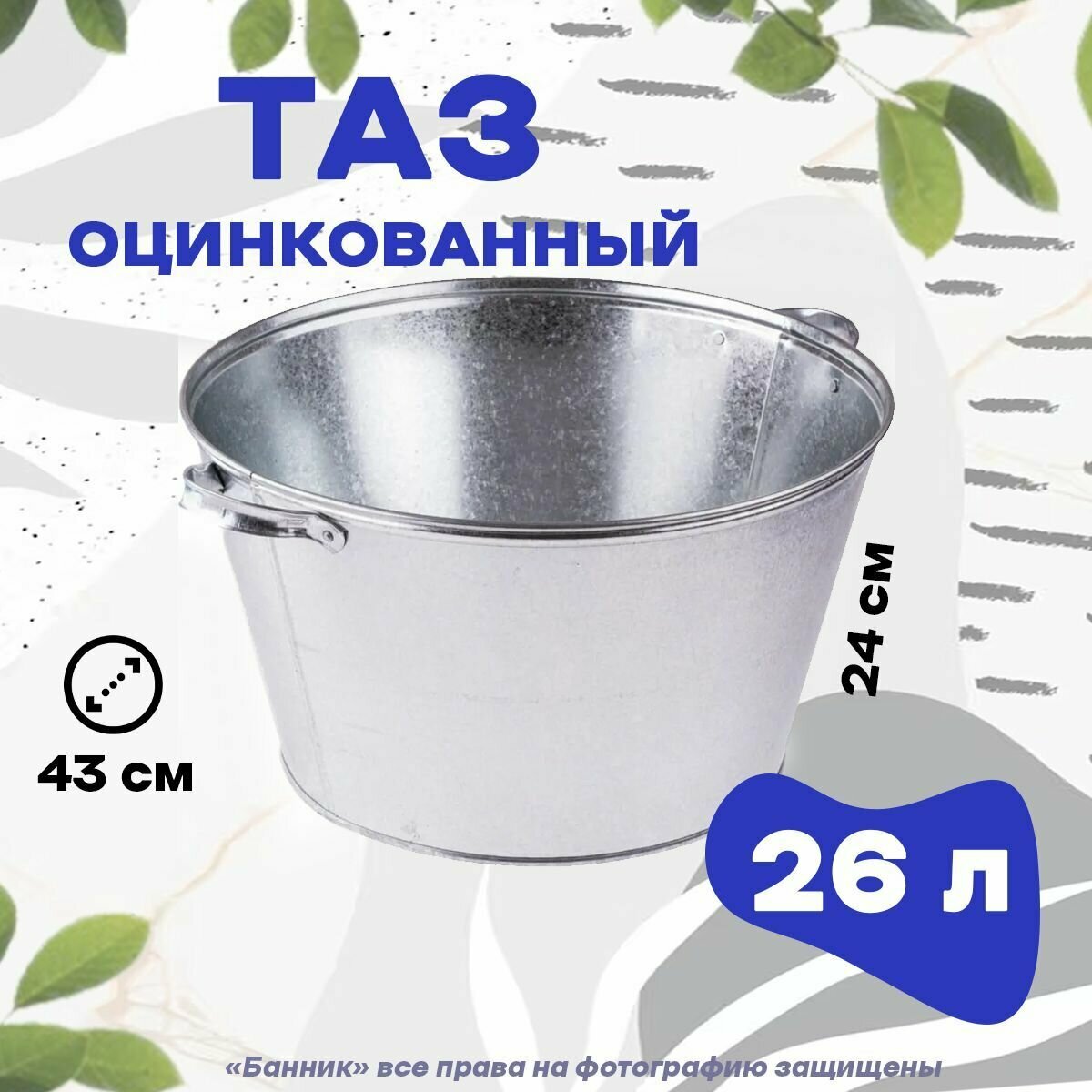 Таз для бани оцинкованный 26 л круглый информация: