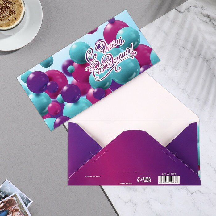 Отзывы на Конверт для денег "С Днём Рождения!" бирюзовые шары, 16,5х8 см, 10 штук