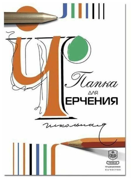 Папка для черчения Гознак школьная 42 х 29.7 см (A3), 200 г/м², 24 л. (24шт.) белый/оранжевый/зеленый 380 ₽