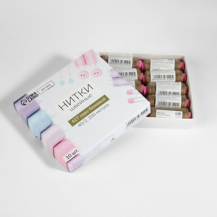 10 цен на Нитки 40/2, 200 м, цвет серо-бежевый №427 10 шт
