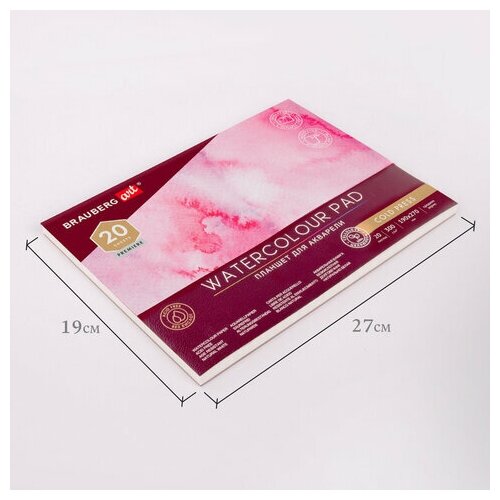 Планшет для акварели хлопок 30%, 300 г, 190х270 мм, склейка, 4 стороны, среднее зерно, 20 л., BRAUBERG ART, 113251 881 ₽