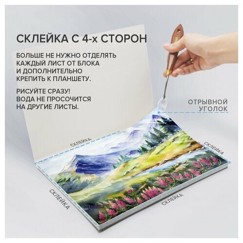 Планшет для акварели хлопок 30%, 300 г, 270х390 мм, склейка, 4 стороны, среднее зерно, 20 л., BRAUBERG ART, 113252