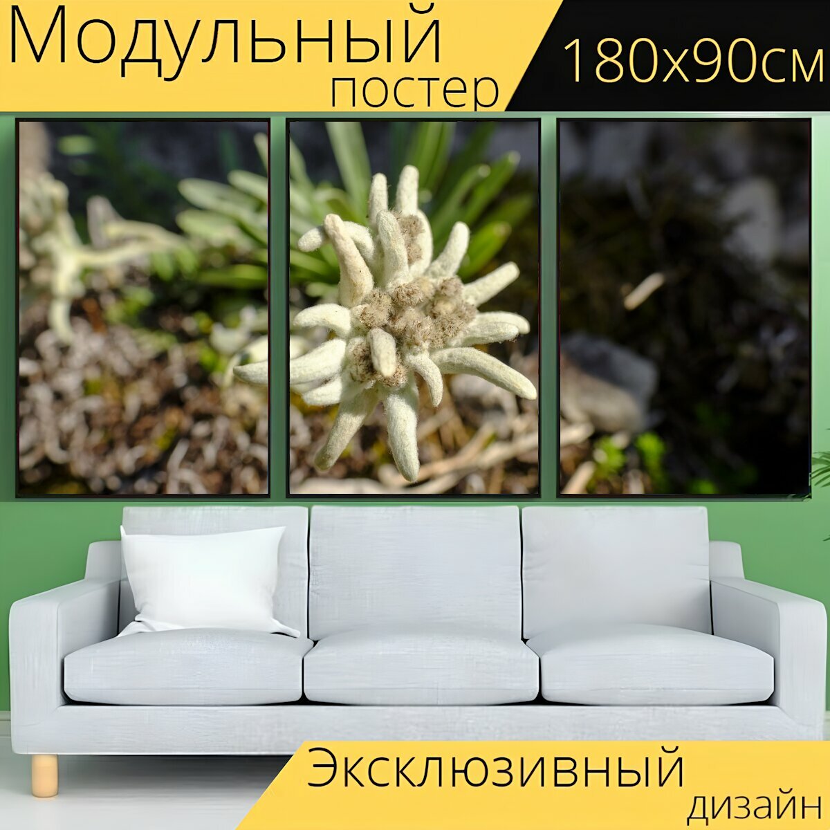 10 цен на Модульный постер "Эдельвейс, цветок, цвести" 180 x 90 см. для интерьера