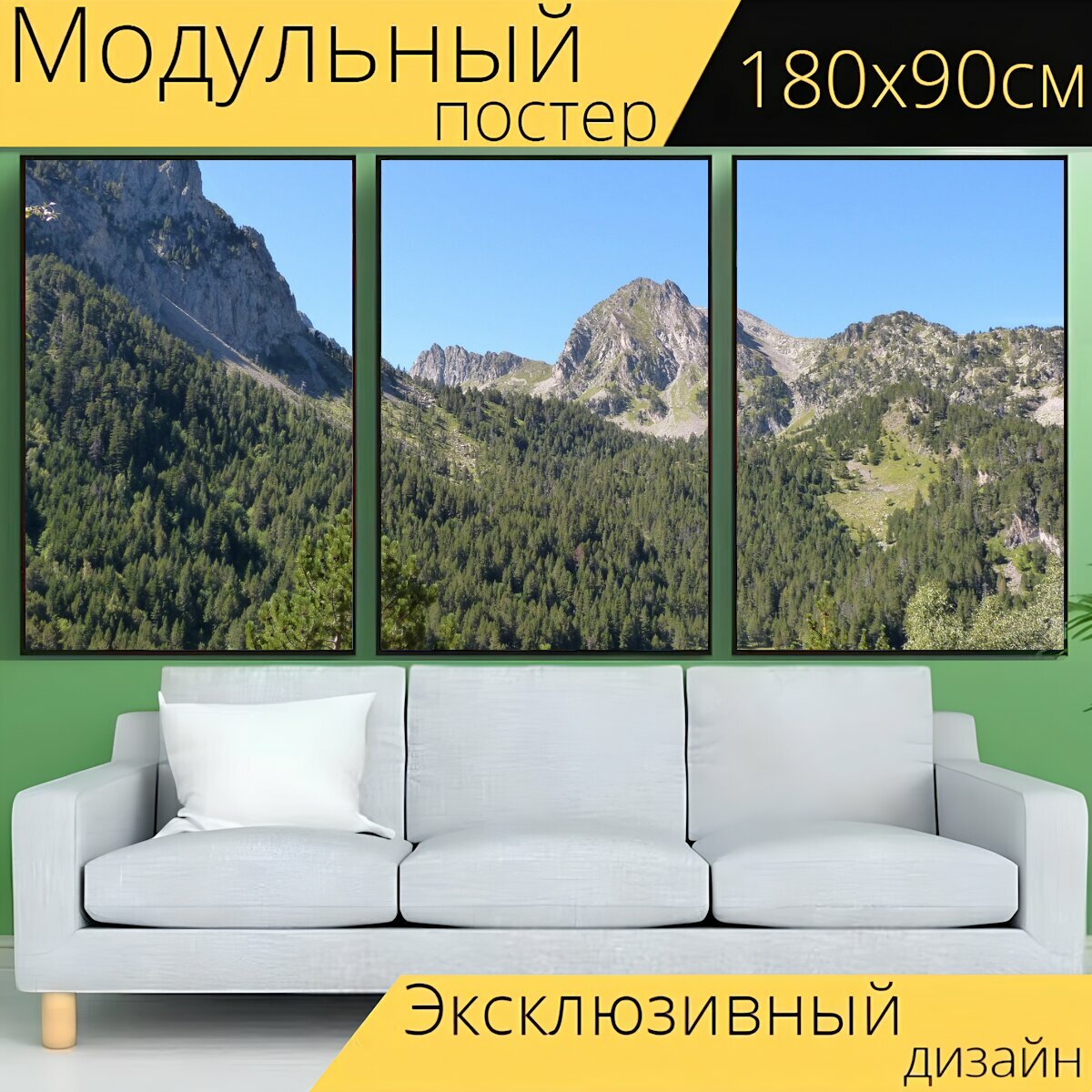 Модульный постер "Гора, озеро, пиренеи" 180 x 90 см. для интерьера информация: