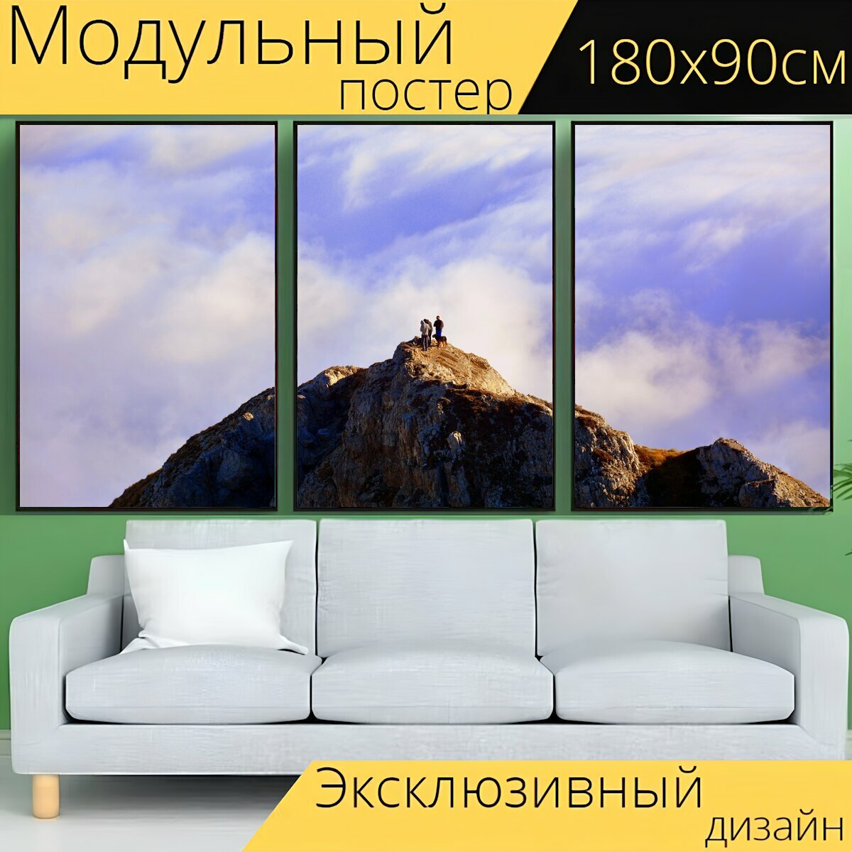 Модульный постер "Вершина, экскурсия, облака" 180 x 90 см. для интерьера информация: