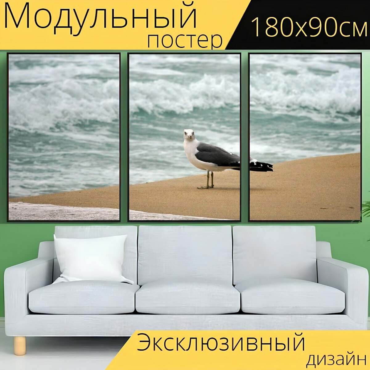 Модульный постер "Чайка, море, природа" 180 x 90 см. для интерьера информация: