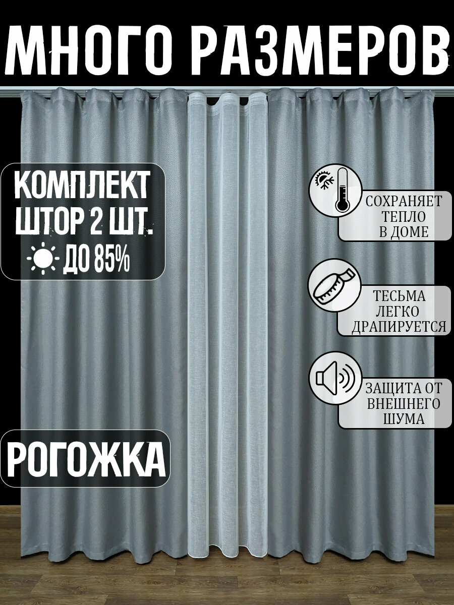 Готовый комплект плотных интерьерных штор(портьер) рогожка без рисунка (2 шт., каждая штора 250x240 см) со шторной лентой 5 547 ₽