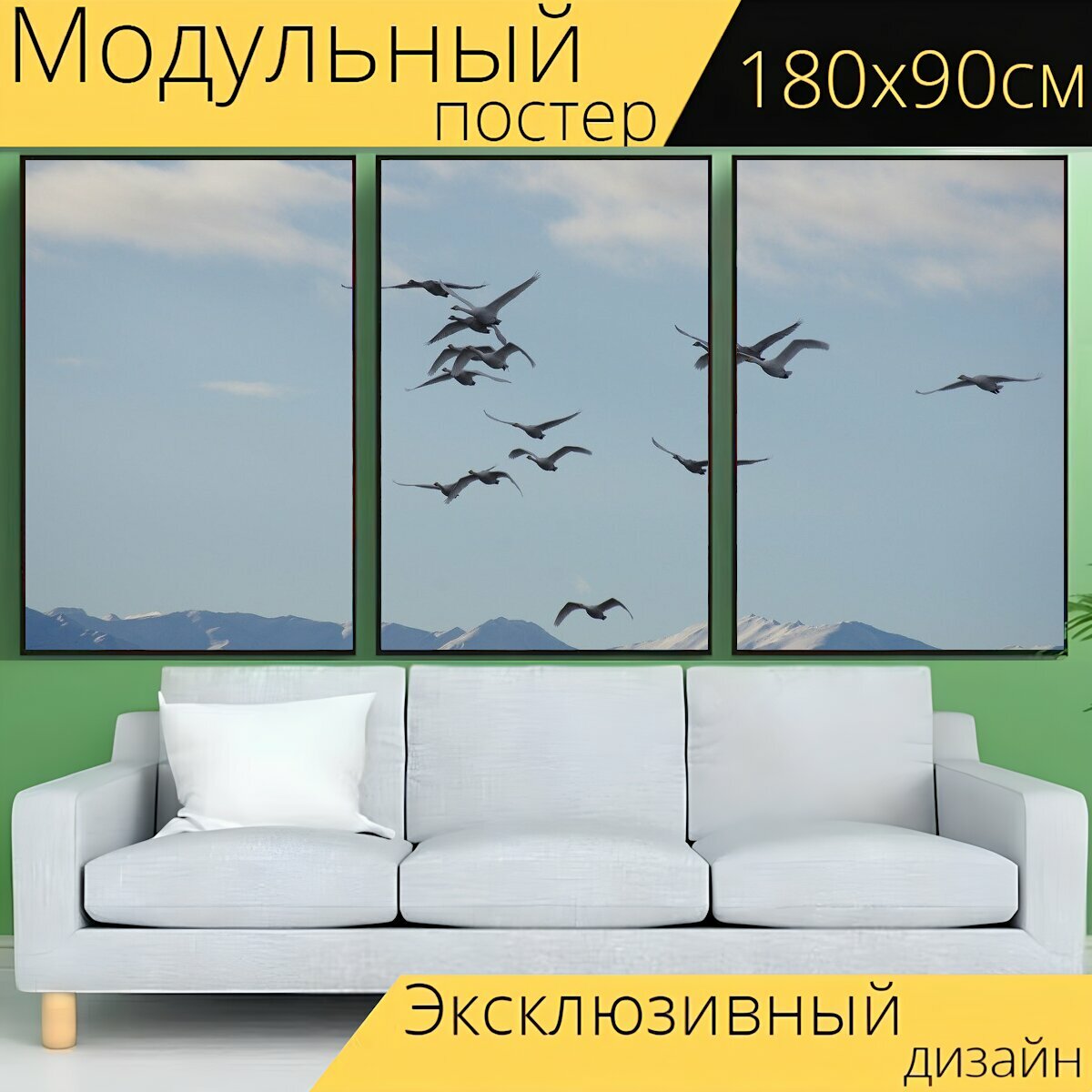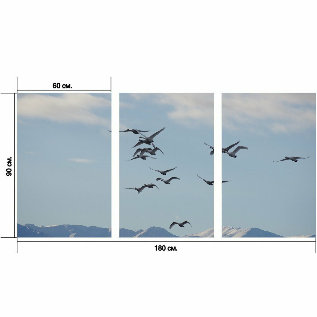 Отзывы на Модульный постер "Дикие лебеди, кликуны, стая" 180 x 90 см. для интерьера