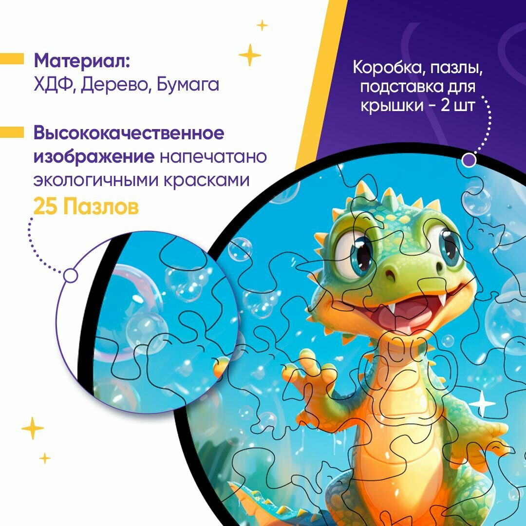 Деревянный фигурный пазл для детей "Крокодил", 25 деталей, ENTICA информация:
