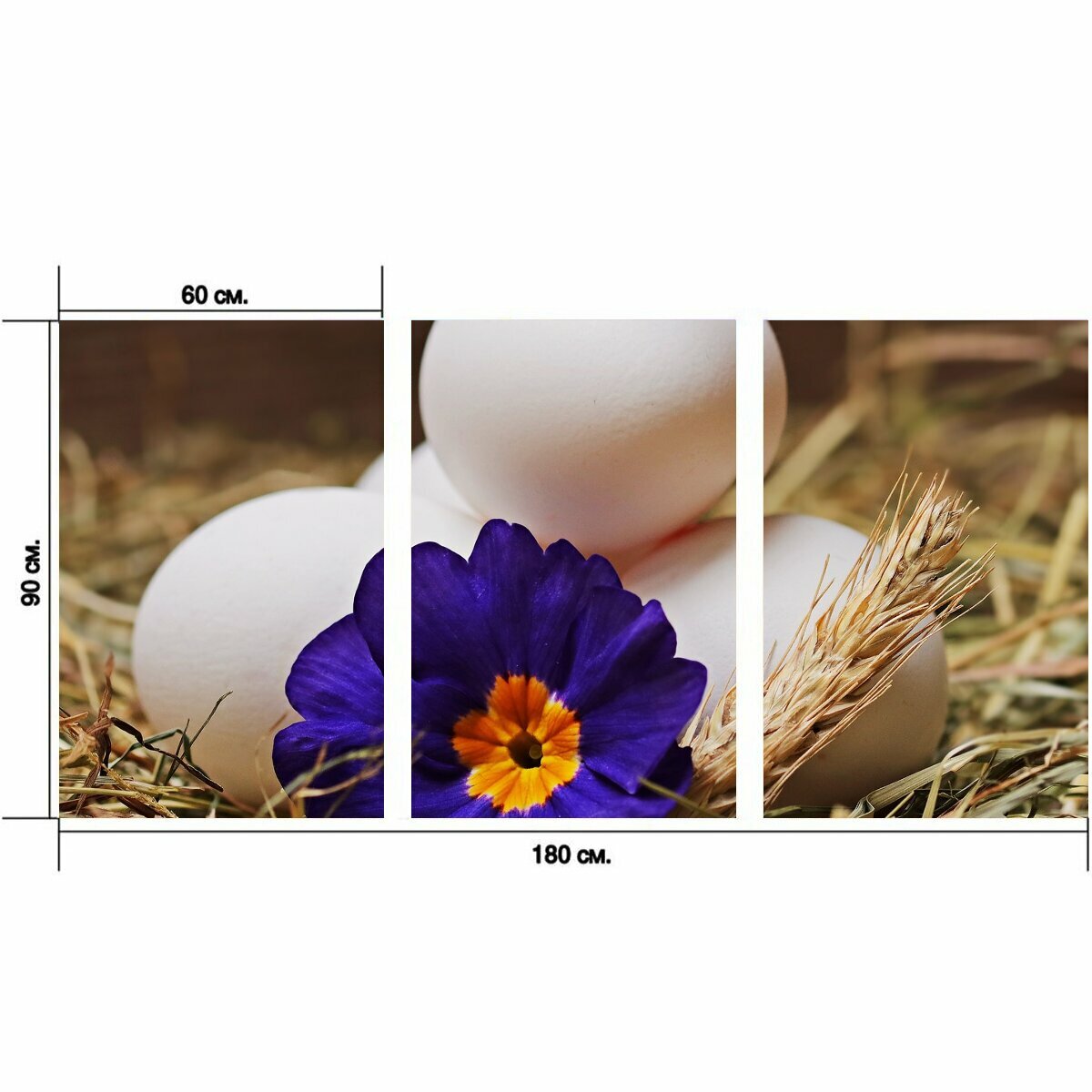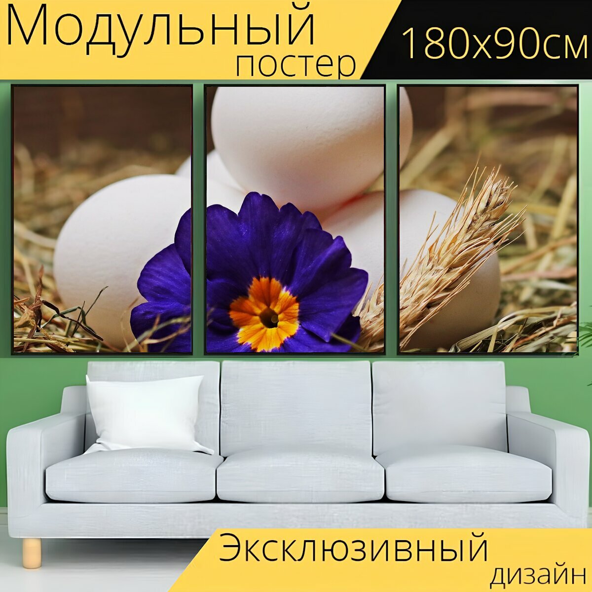 Отзывы на Модульный постер "Яйца, солома, цветок" 180 x 90 см. для интерьера