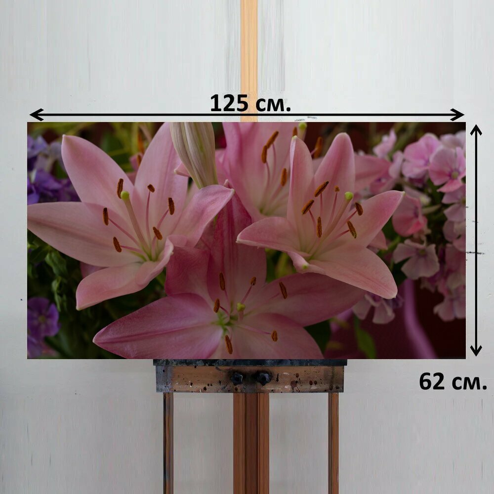 Отзывы на Картина на ОСП 125х62 см. "Лили, лилии, розовый" горизонтальная, для интерьера, с креплениями