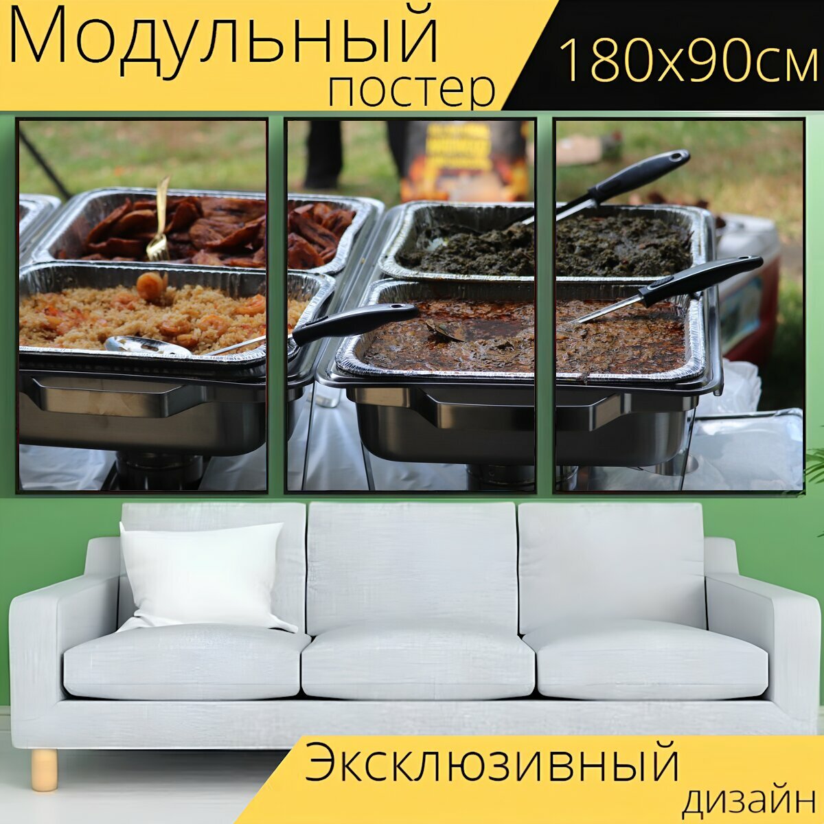 Модульный постер "Африканец, еда, празднование" 180 x 90 см. для интерьера информация: