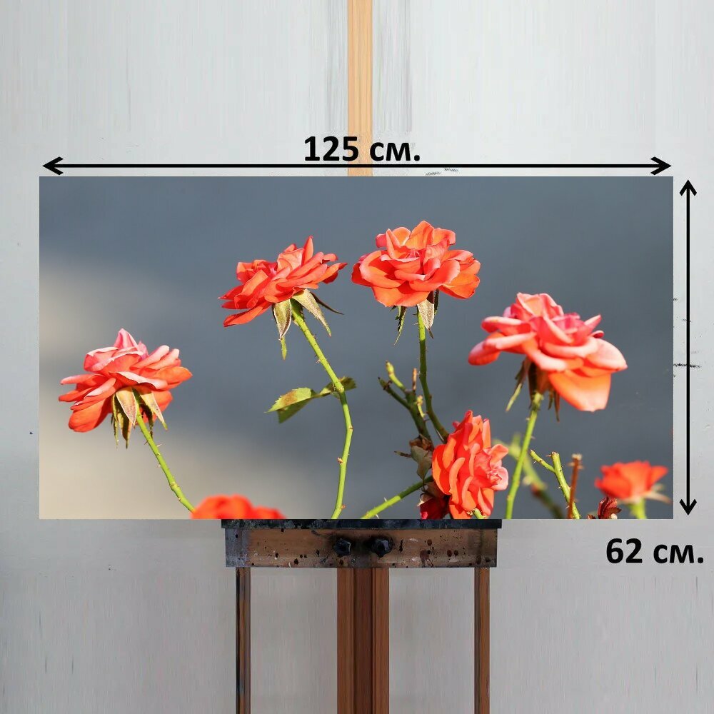 Картина на ОСП 125х62 см. "Красные розы, цветок, блум" горизонтальная, для интерьера, с креплениями информация: