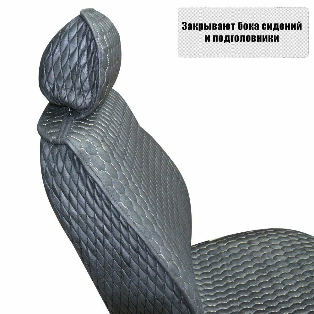 Накидки-чехлы для Мерседес-Бенц г-класс (1979 - 2009) внедорожник 5 дверей / Mercedes-Benz G-Class на передние сиденья Luxe MK, Экокожа, Черный с бежевой строчкой информация: