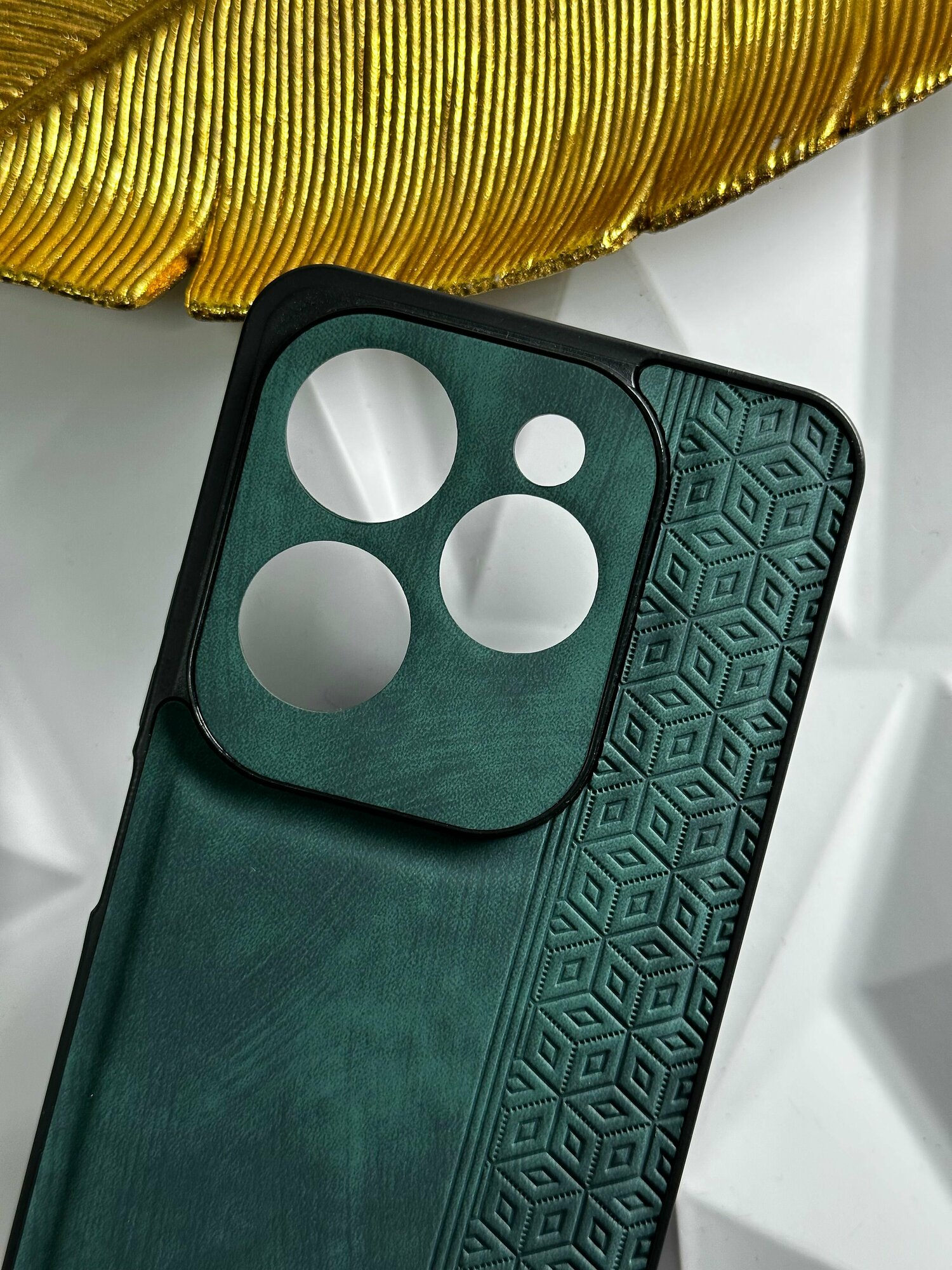 Чехол кожаный на Infinix Hot 40i/ Tecno Spark 20C (Чехол Инфиникс Хот 40i, Техно Спарк 20С) с защитой камеры, геометрия, зеленый информация: