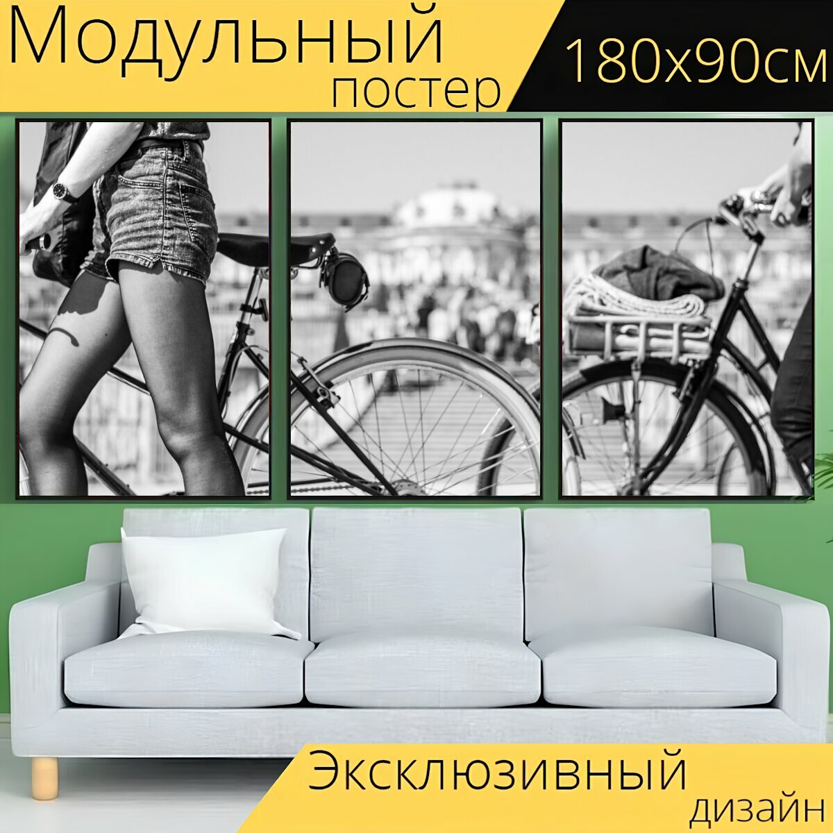 Модульный постер "Велосипед, летом, кататься на велосипеде" 180 x 90 см. для интерьера информация: