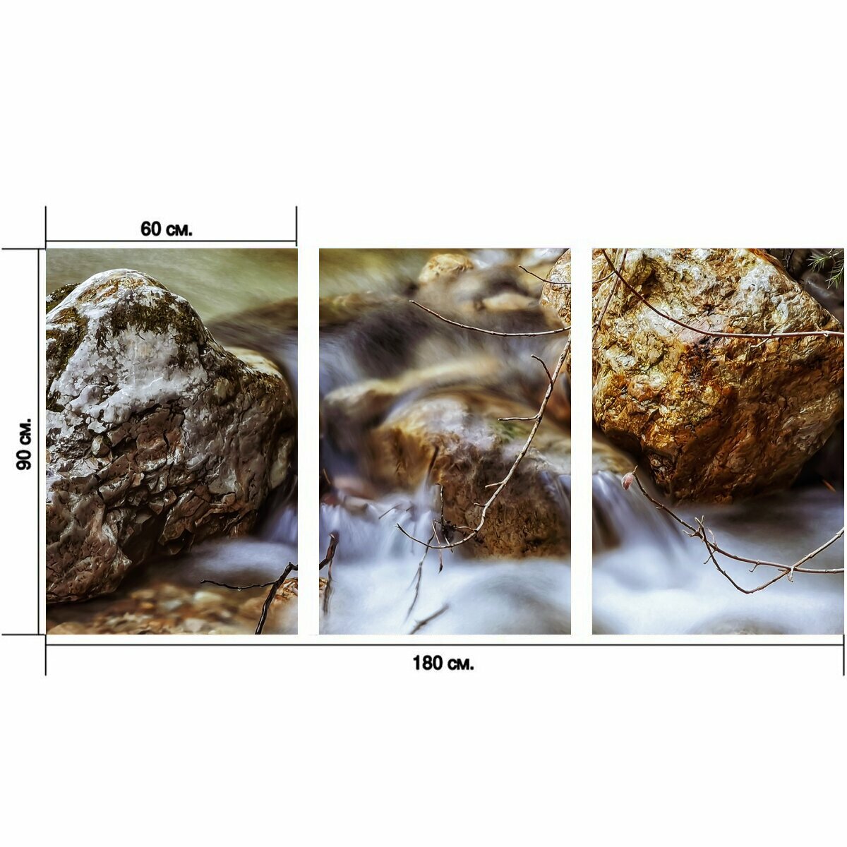 10 цен на Модульный постер "Ручей, вода, камни" 180 x 90 см. для интерьера