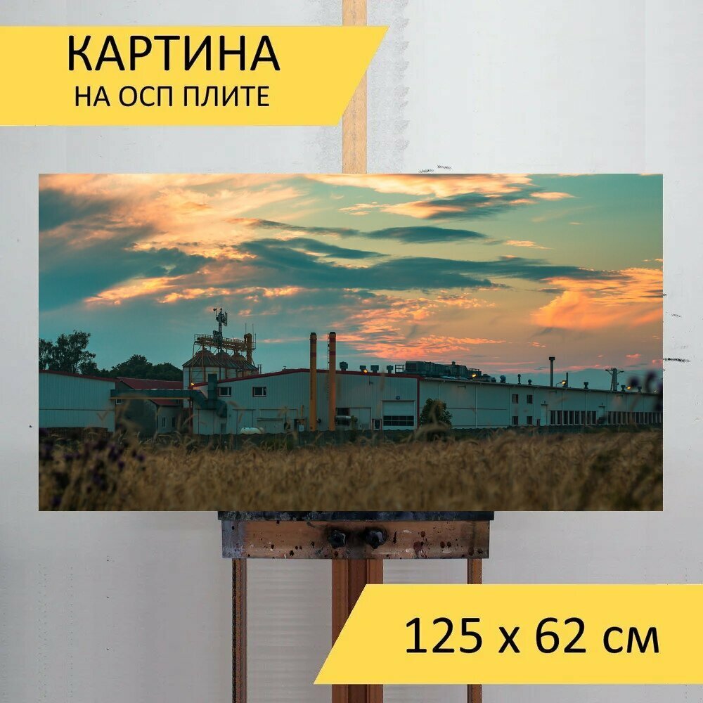 Отзывы на Картина на ОСП 125х62 см. "Фабрика, производство, строительство" горизонтальная, для интерьера, с креплениями