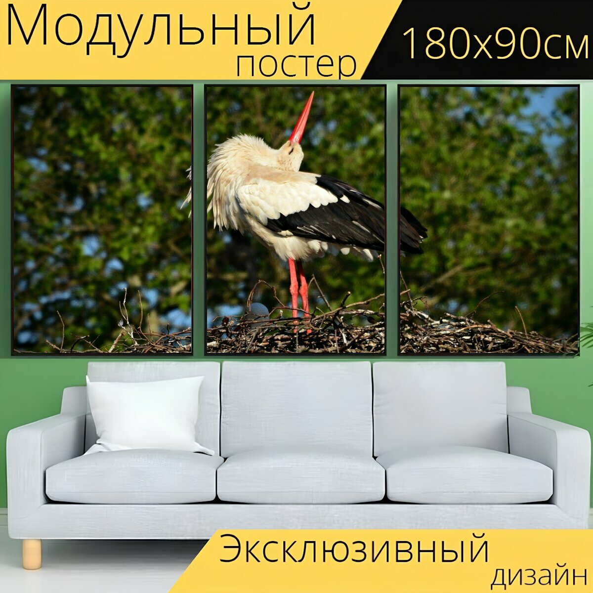 Модульный постер "Аист, птица, животное" 180 x 90 см. для интерьера информация: