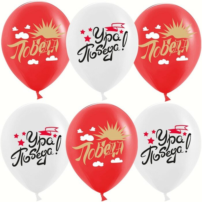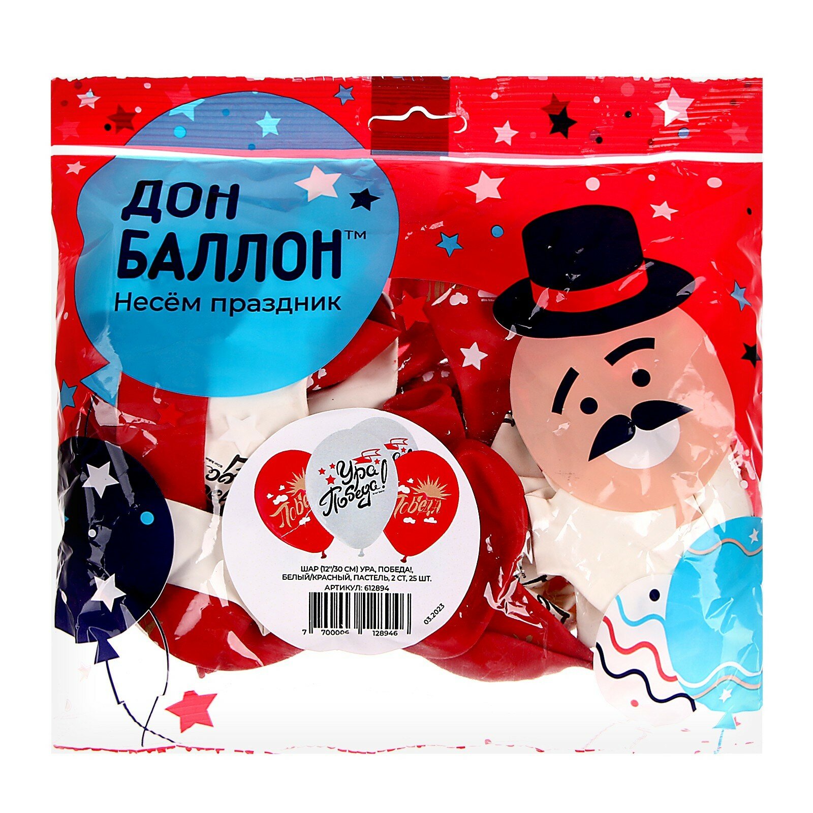 Отзывы на Шар латексный 12" «Ура, Победа!», белый/красный, пастель, 2 ст., набор 25 шт.