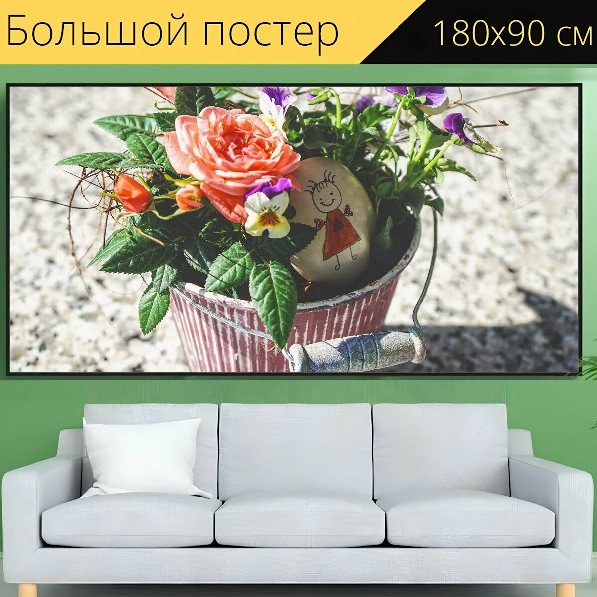 10 цен на Большой постер "Цветочное приветствие, весна приветствие, спасибо" 180 x 90 см. для интерьера