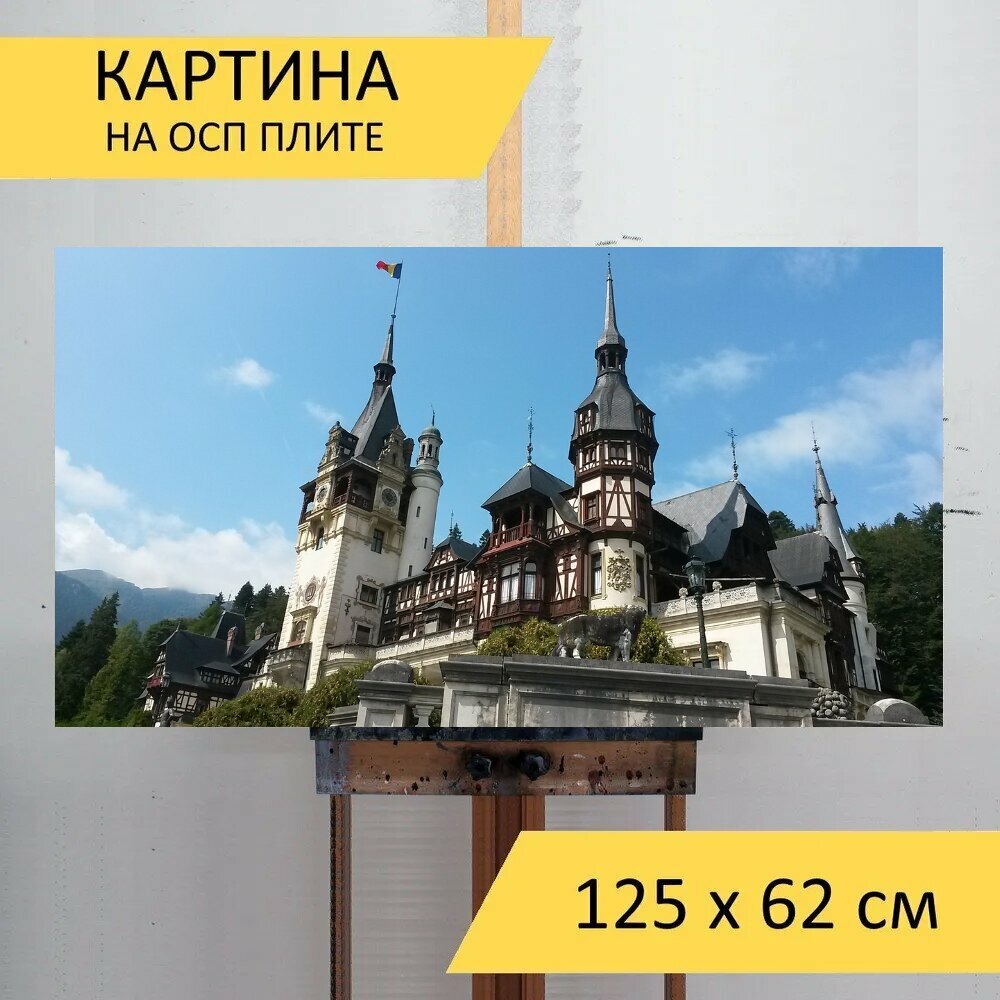 Картина на ОСП 125х62 см. "Замок, румыния, памятник" горизонтальная, для интерьера, с креплениями информация: