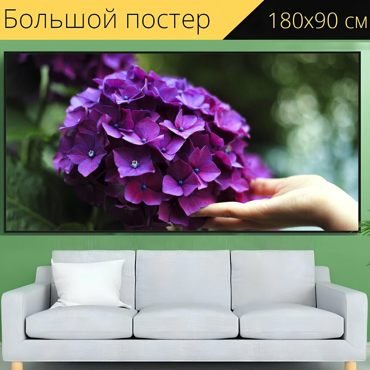 Большой постер "Гортензии, рука, трогать" 180 x 90 см. для интерьера информация: