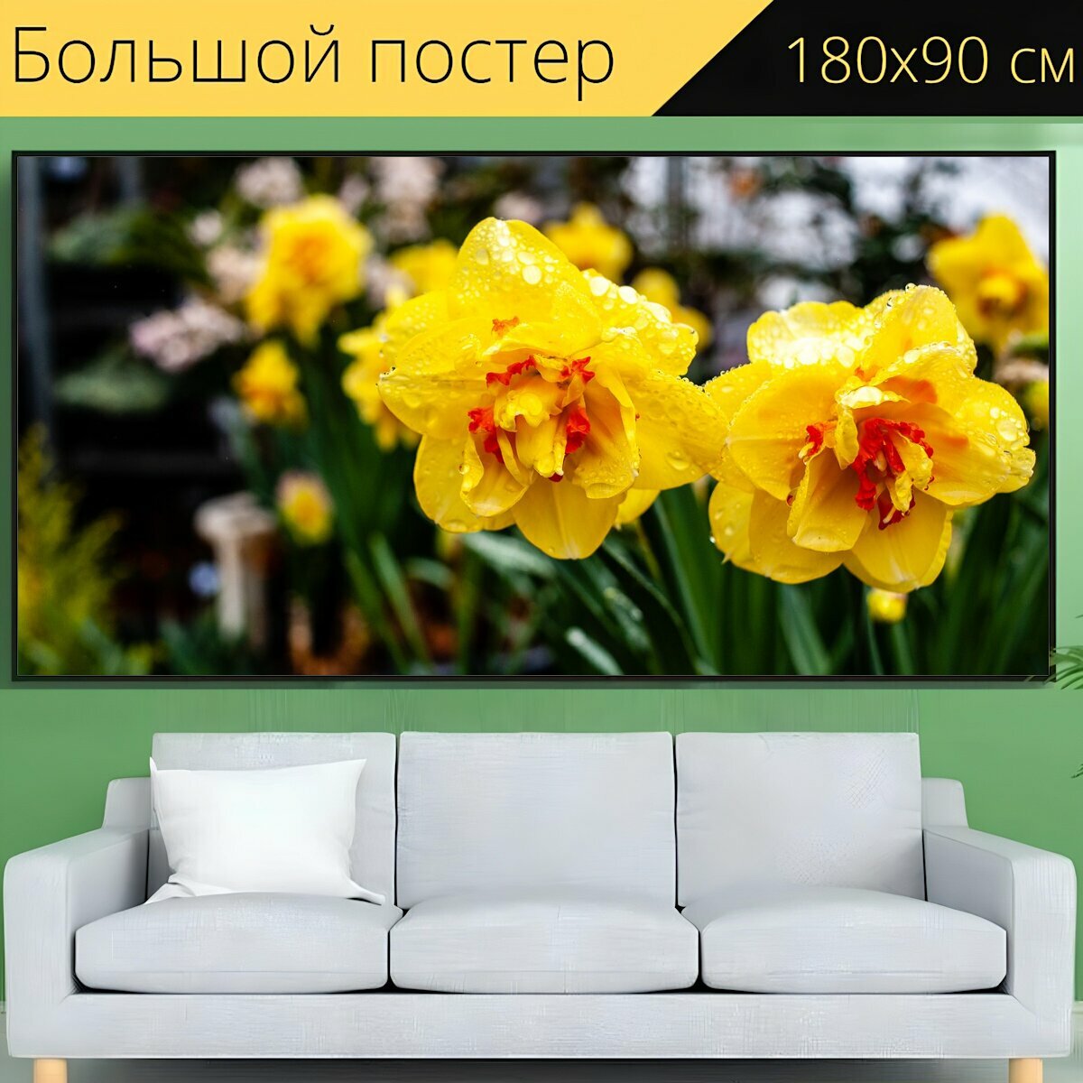 Отзывы на Большой постер "Цветы, желтые цветы, роса" 180 x 90 см. для интерьера