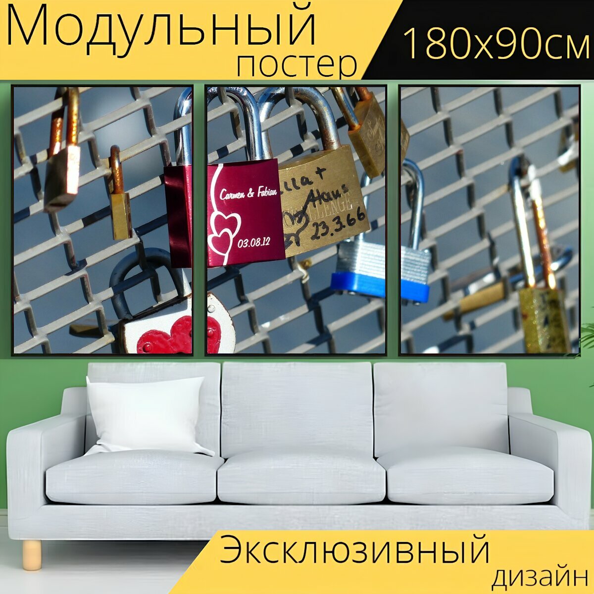 Модульный постер "Замок, замки, изгородь" 180 x 90 см. для интерьера информация: