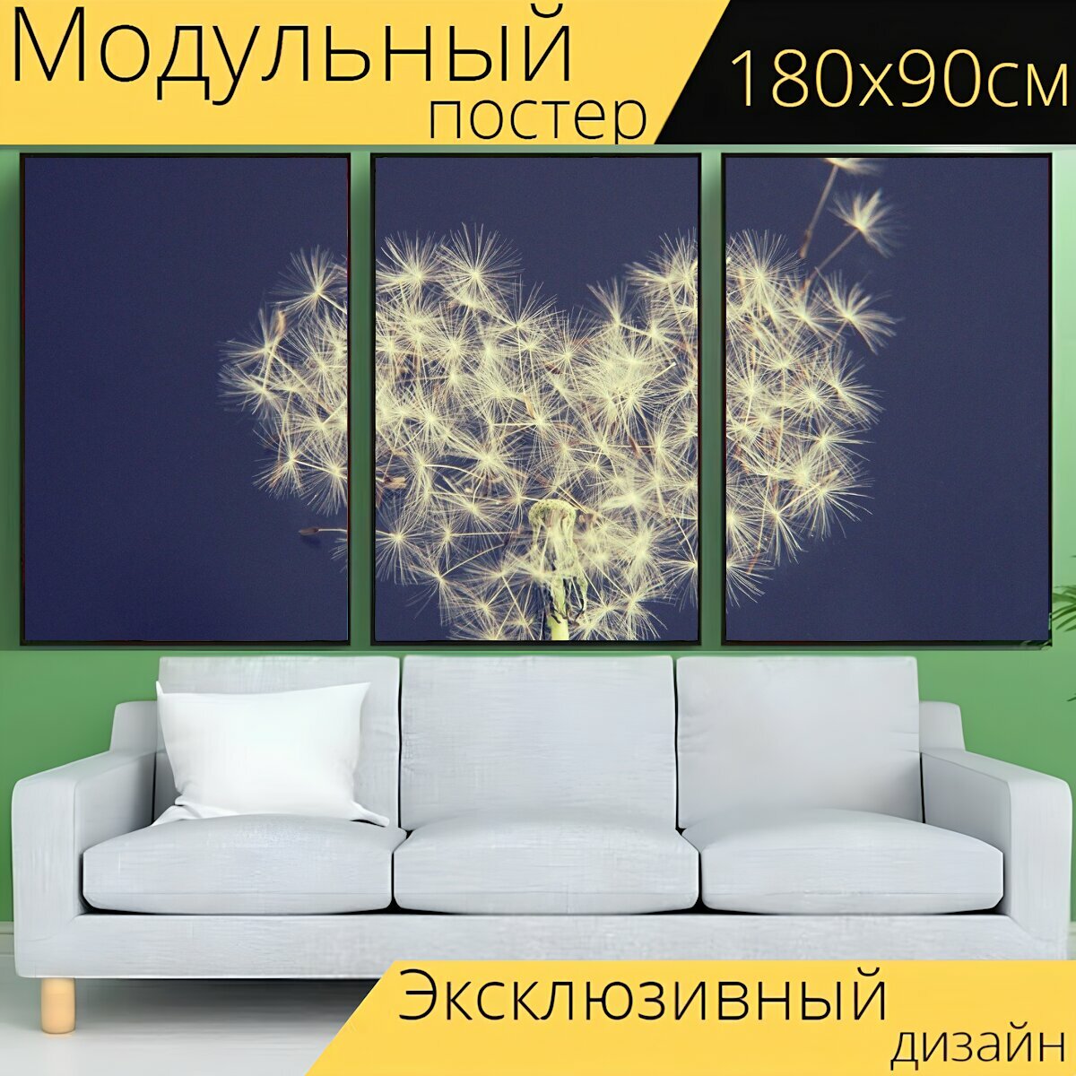 Отзывы на Модульный постер "Одуванчик, сердце, желаю вам" 180 x 90 см. для интерьера