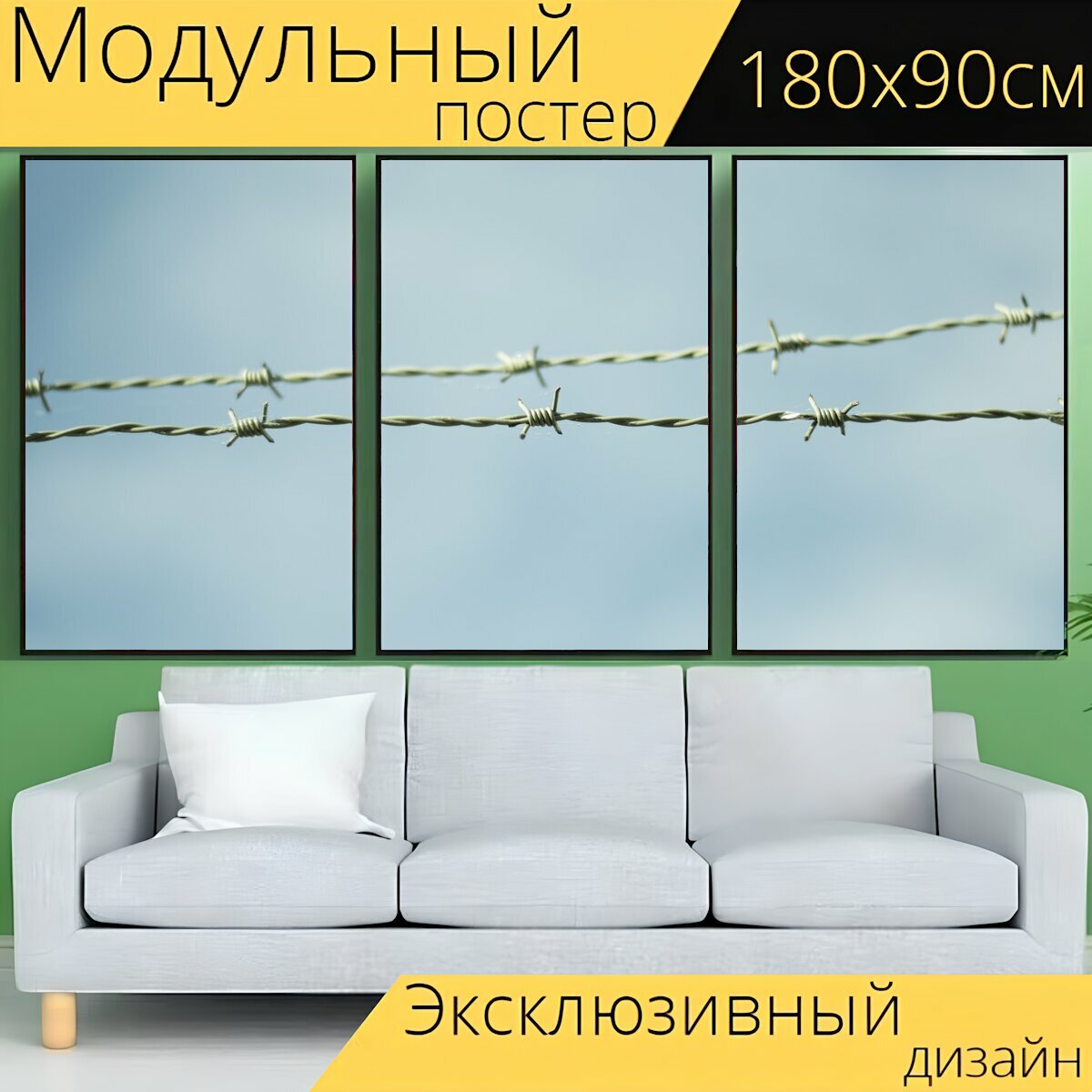 Модульный постер "Колючая проволока, изгородь, небо" 180 x 90 см. для интерьера информация: