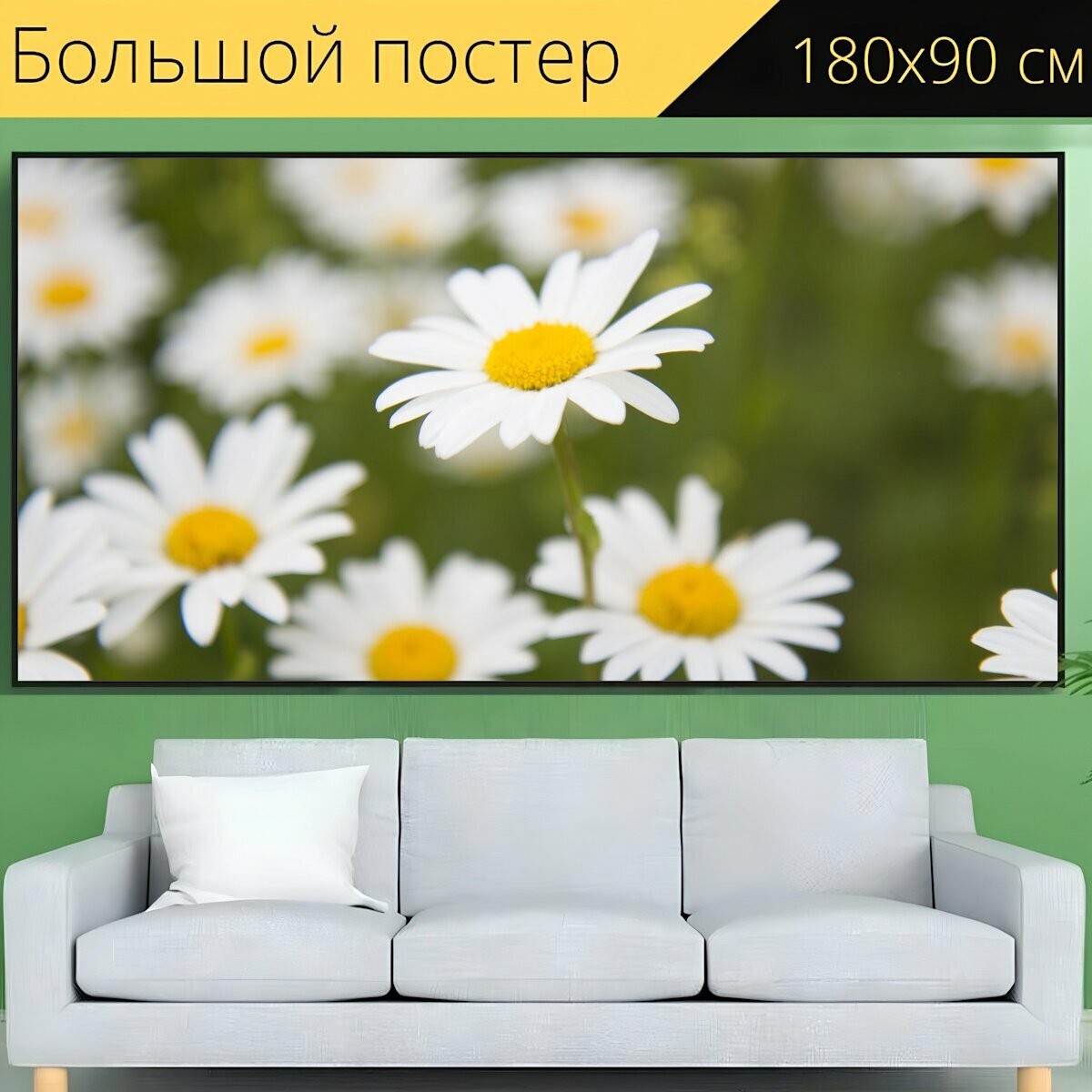 Большой постер "Маргаритка, луг луг, летом" 180 x 90 см. для интерьера информация: