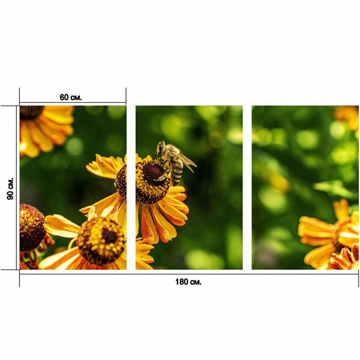 10 цен на Модульный постер "Цветок, пчела, насекомые" 180 x 90 см. для интерьера
